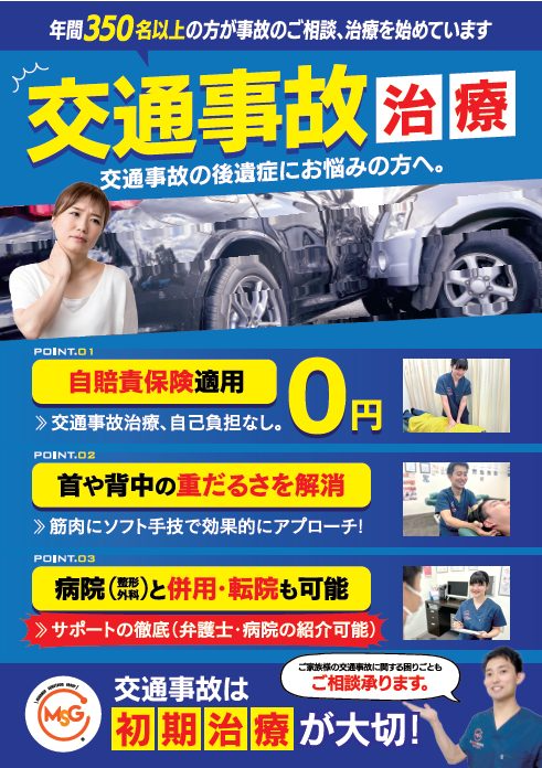 事故に会われてから何となく身体が怠くてやる気が出ない、何をしていても痛くて辛い、そんな症状でお悩みではありませんか?